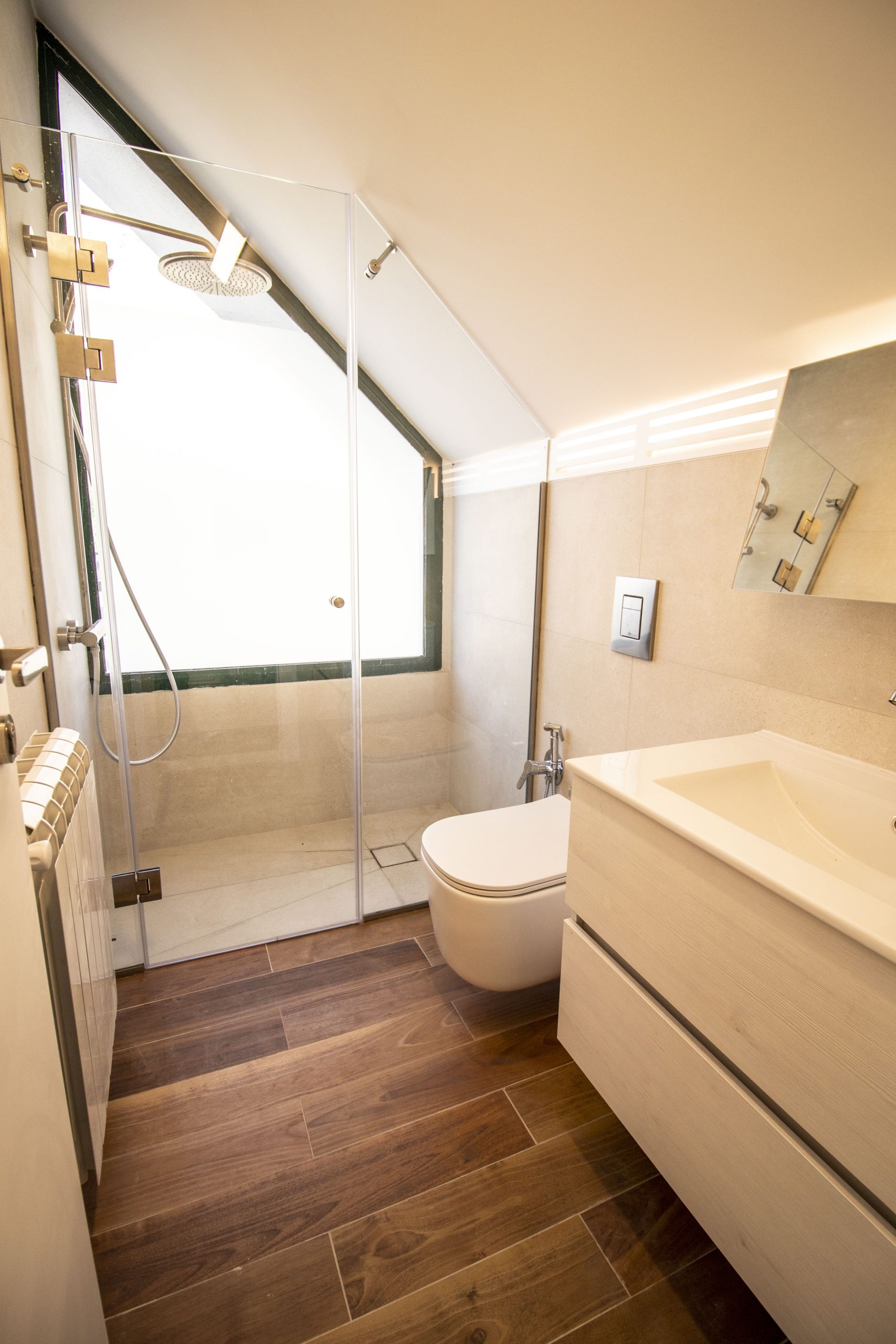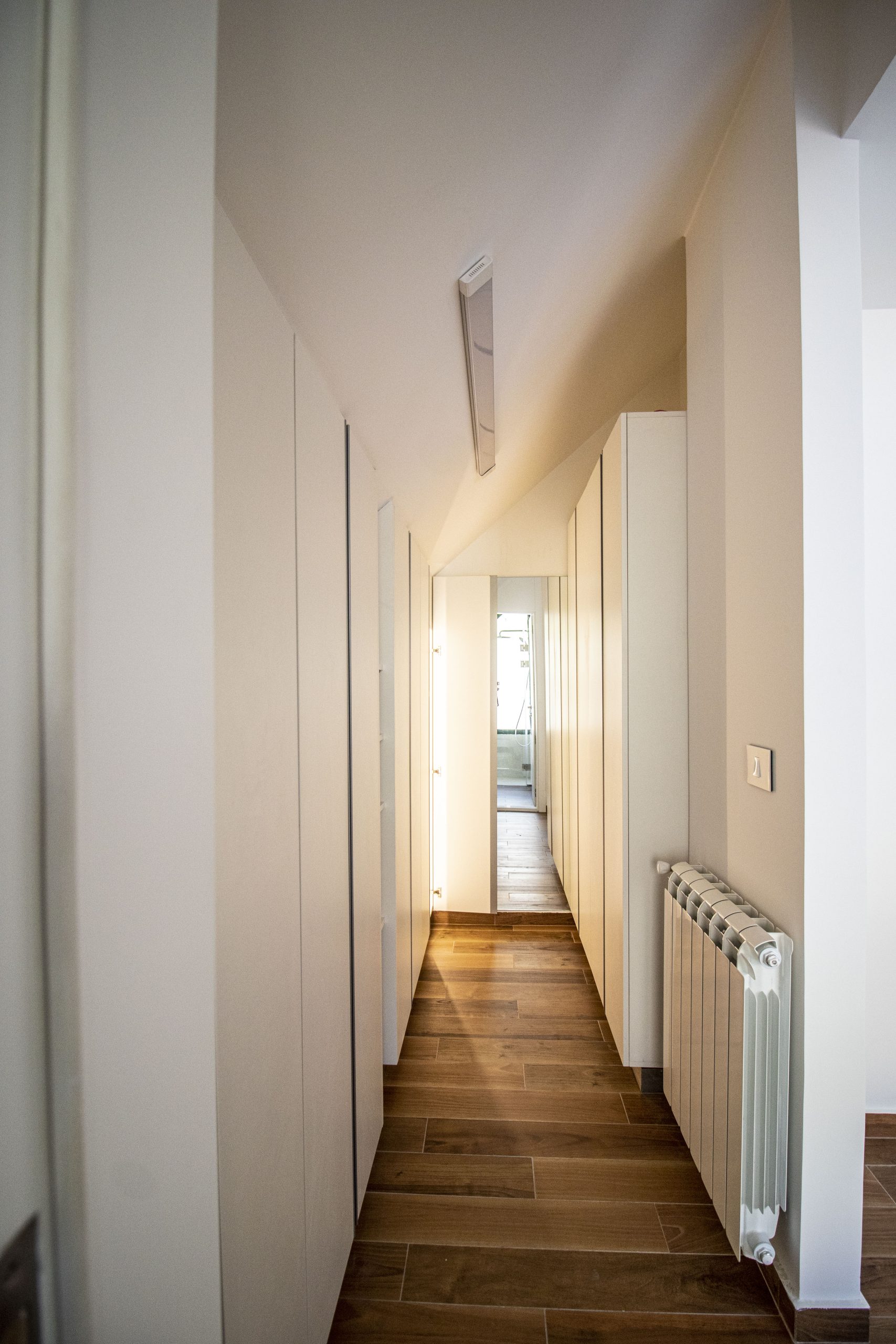 The internal staircase connecting the three levels was fully redesigned to enhance circulation efficiency and spatial continuity. Bedrooms and bathrooms were entirely remodeled, and a new master suite was created by inserting a walk-in closet and bathroom into a previously unused void space.